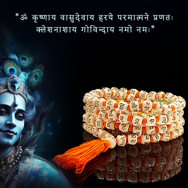 Pure Hare Ram Hare Krishna Tulsi Combo: 54 Beads Mala & Bracelet