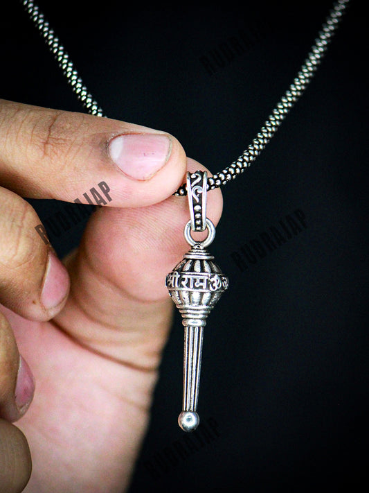 Men Sliver Chain Gada Pendant
