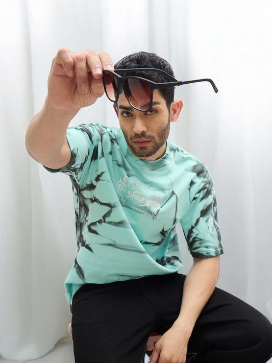 Mint Green Spray Print T-Shirt – "अंतः अस्ति प्रारंभः" (The End is the Beginning)