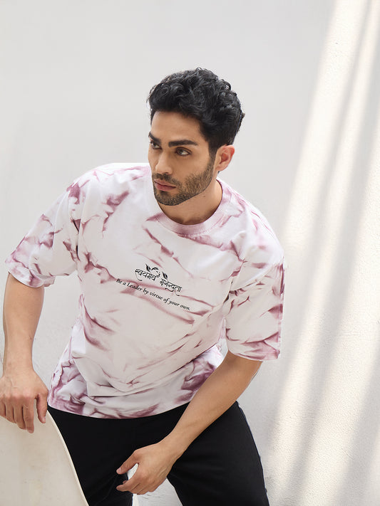 White Spray Print T-Shirt – "स्वयमेव मृगेन्द्रता" (Be a Leader by Virtue of Your Own)