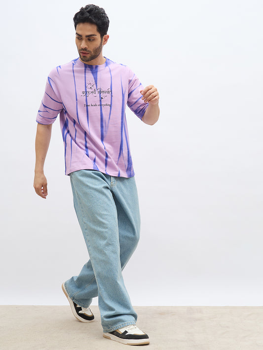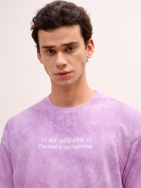Lavender Acid Wash Oversized T-Shirt - "।। अंतः अस्ति प्रारंभः ।।" Sanskrit quotes