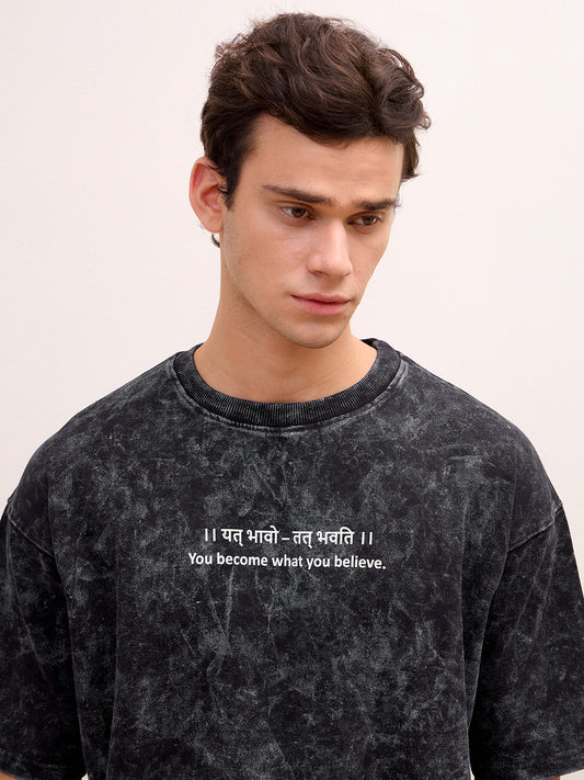 Black Acid Wash Oversized T-Shirt - "।। यत् भावो – तत् भवति ।।" Sanskrit quotes