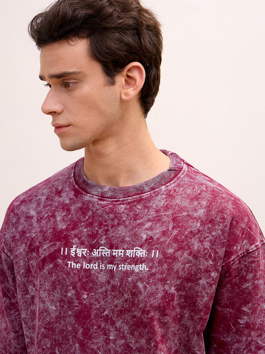 Brick Red Acid Wash Oversized T-Shirt - "।। ईश्वरः अस्ति मम शक्तिः ।।" Sanskrit quotes