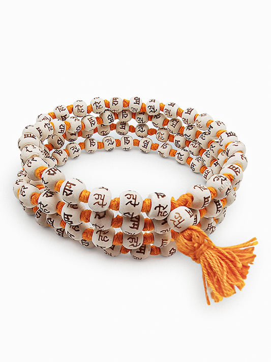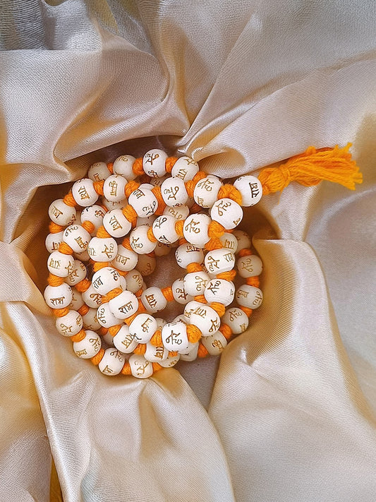 White Tulsi Mala (54 Beads) and Bracelet Combo