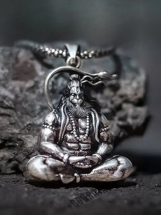 Bajrang Bali Hanuman Pendant and Hanuman Gadha Silver Combo